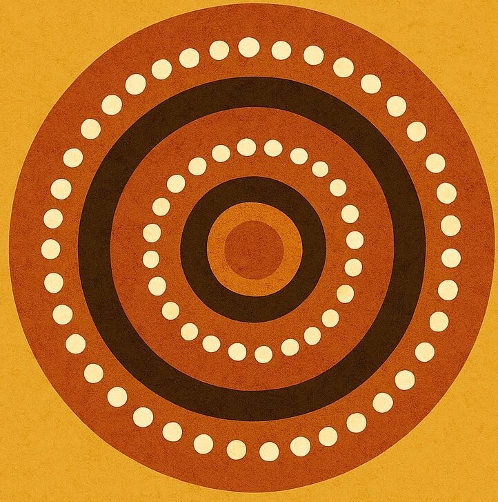 In Aboriginal culture, the circle is a powerful symbol — it speaks of community, unity, and the never-ending connection between people, land, and spirit. Each ring represents a story — of ancestors, journeys, and gatherings that continue to shape